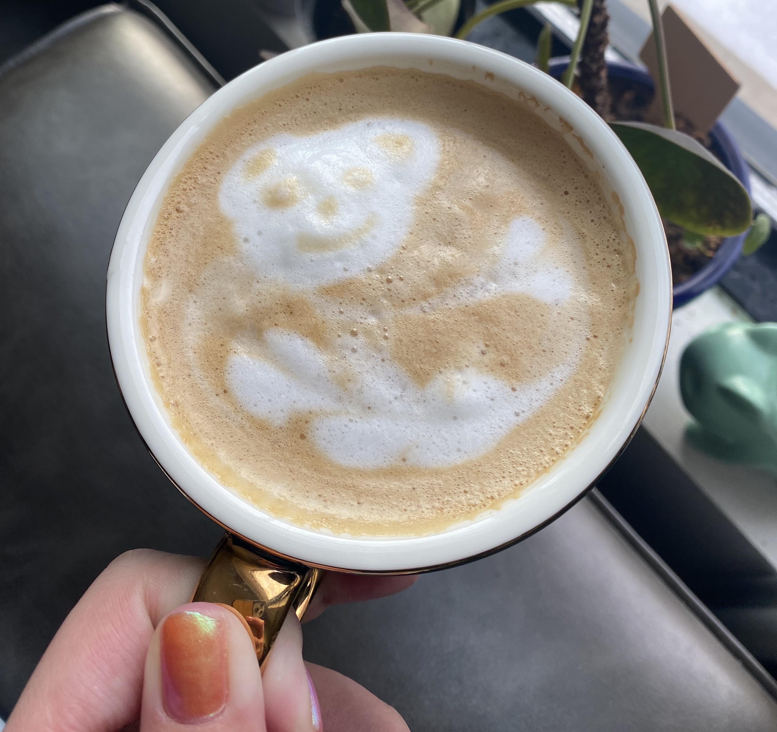 Three weeks into latte-making, I got to pass my knowledge on. Angel and I’s friendship started at the espresso machine when he asked for a demo. A fellow technical intern, we started sitting together and spent many afternoons giggling over terrible puns. I’ll get to watch him hone his skills at the espresso machine.